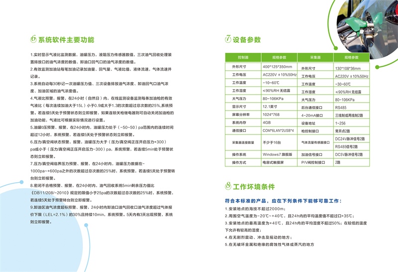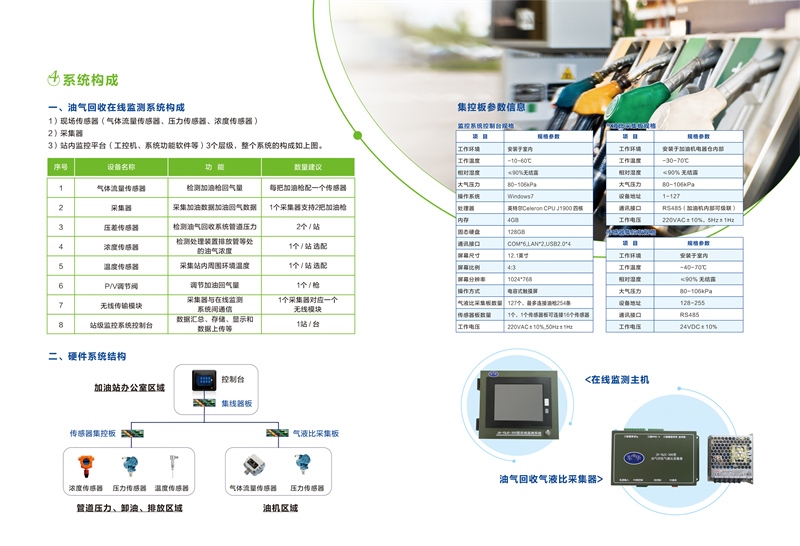 性能特點(diǎn):該系統(tǒng)額定電壓為220V,額定功率為150w。2、本套系統(tǒng)適用于加油站各種類型的加油機(jī)油氣回收監(jiān)測,實(shí)時(shí)準(zhǔn)確監(jiān)控系統(tǒng)運(yùn)行。3可視化提作與顯示界面,方便客戶使用,后臺(tái)數(shù)據(jù)庫造算系統(tǒng),數(shù)據(jù)處理迅速,準(zhǔn)確可實(shí)時(shí)監(jiān)測加油量、回氣量、氣液比值以及罐區(qū)及管道壓力、排放濃度等數(shù)值。4.采集器與控制器之間采用有線和無線兩種數(shù)據(jù)傳輸方式,可滿足油站的不同需求5.采集器景緊湊化設(shè)計(jì),占用空間小、方便安裝,6.在線監(jiān)測系統(tǒng)設(shè)計(jì)為運(yùn)行模式和調(diào)試模式,在調(diào)試模式下可通過工具軟件產(chǎn)生模擬數(shù)據(jù)方便調(diào)試7、氣體流量傳感器采用防爆容積式設(shè)計(jì),計(jì)量準(zhǔn)確,精度高,可靠,無響應(yīng)延時(shí),不受外界環(huán)境影響,可靠性高。8實(shí)時(shí)上傳功能,符合標(biāo)準(zhǔn),支持與環(huán)保單位實(shí)時(shí)互聯(lián)